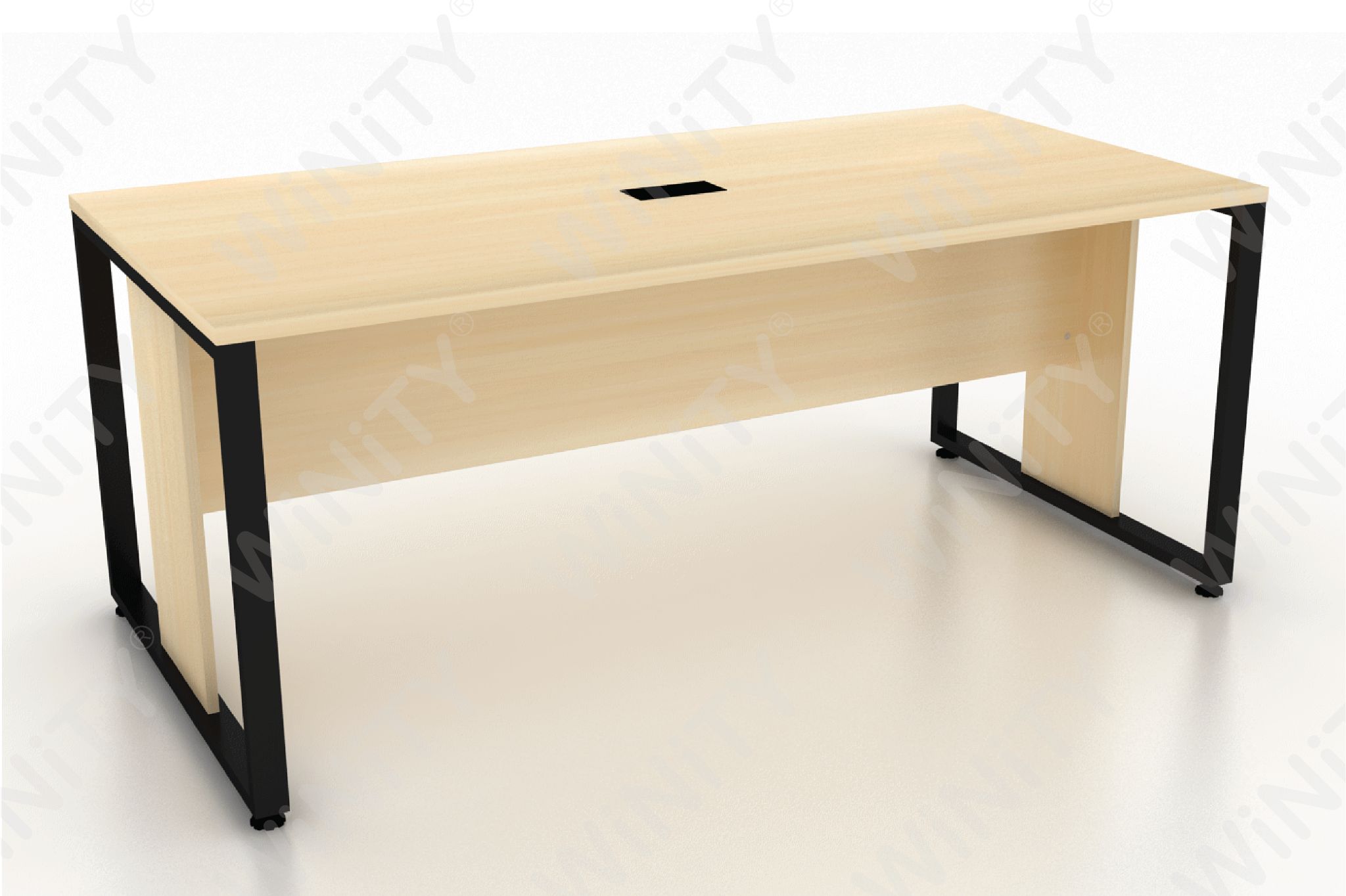 | Melamine Face Chipboard Material Cored, Metal Leg Square Bar Hollow 25 x 50 mm Powder Coated, Aluminium Cable Groumet, Stabillizer Table Leg & Knock Down System |