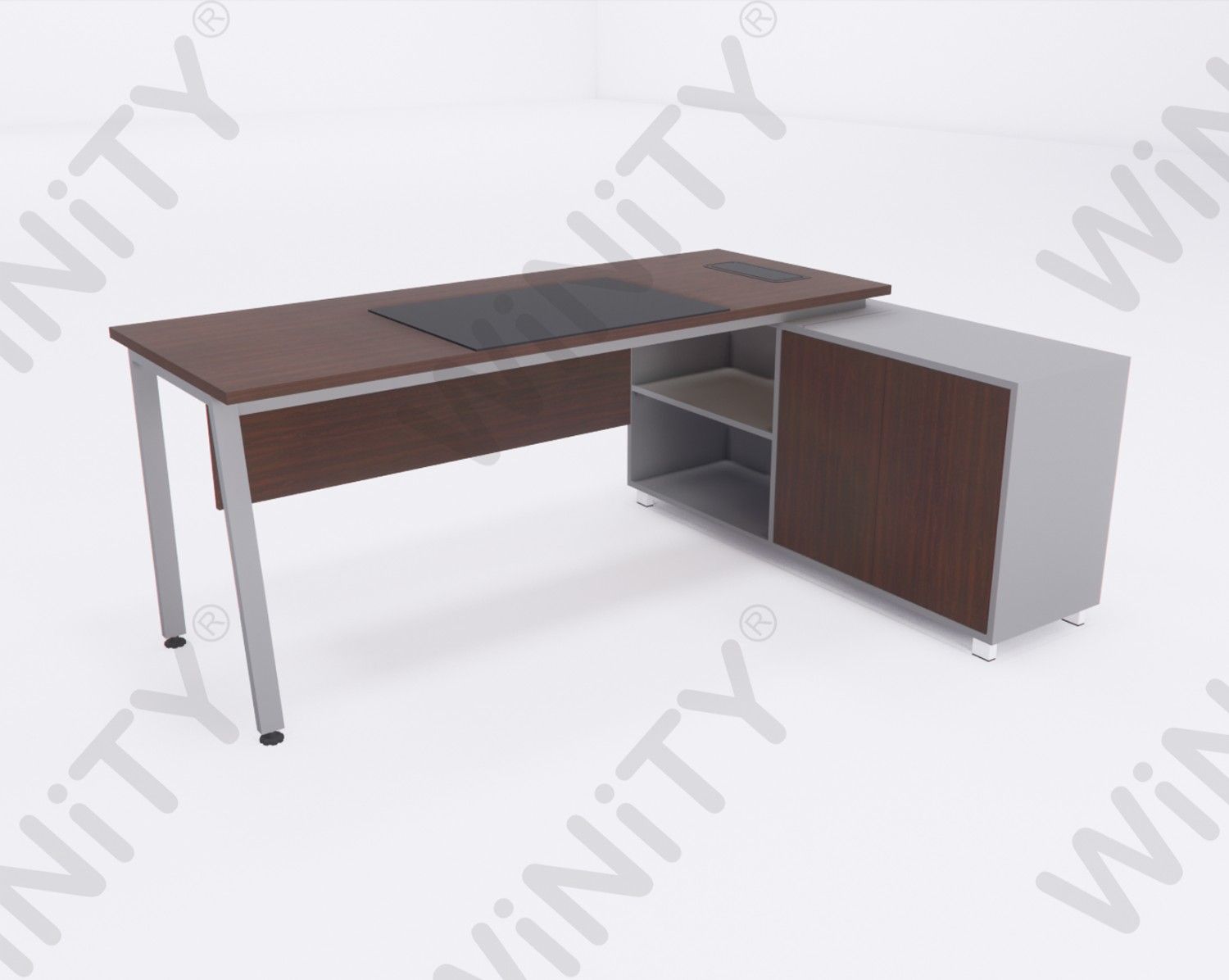 Melamine Face Chipboard Material Cored, Oscar, Metal Leg Square Bar Hollow 25 x 50 mm Powder Coated, Aluminium Cable Groumet, Stabillizer Table Leg, Swing Panel Door, Plastic Cabinet Based & Knock Down System